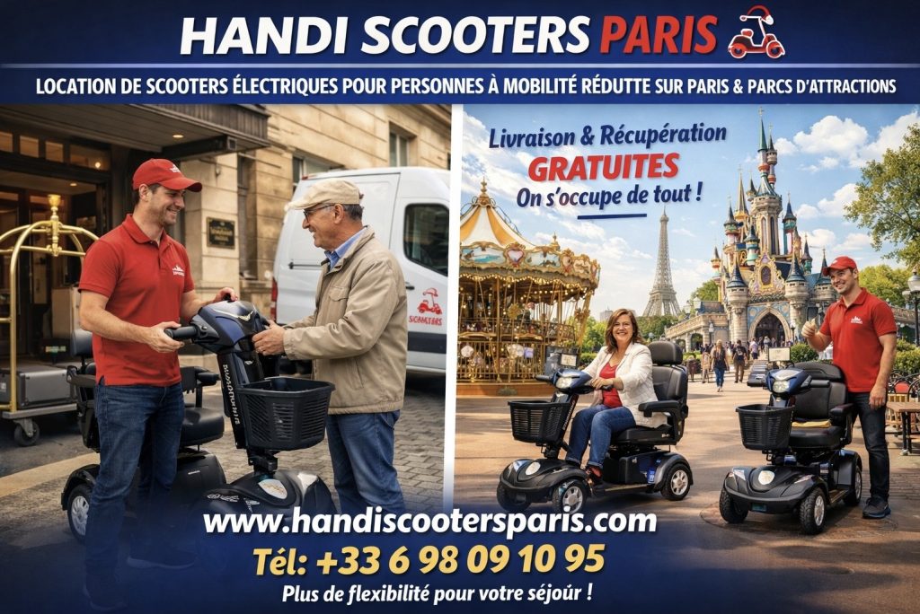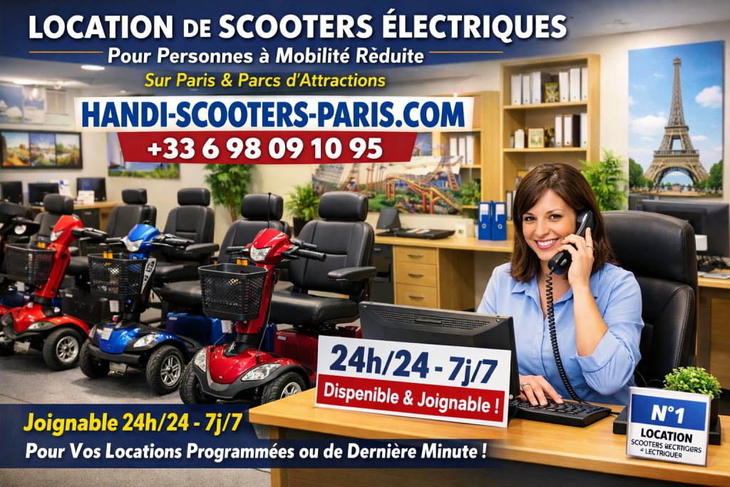 Location de scooters électriques pour personne à mobilité réduite(PMR), senior et handicap sur Paris, Disneyland . 24h24 et 7j/7